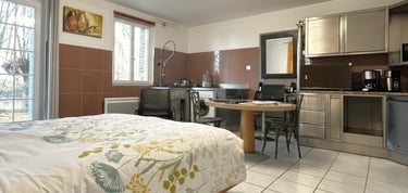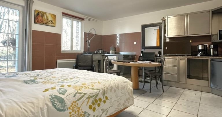 Un logement design entièrement équipé, parfait pour se reposer après une journée de travail ou de visites ou pour un plus long séjour. (restauration et placards pleins).