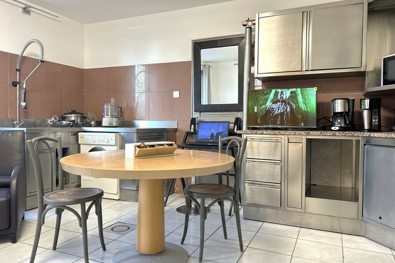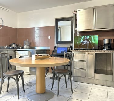 Le logement est équipé de tout ce que vous utilisez chez vous pour cuisiner. Un robot patissier, un robot Magimix, un cuit vapeur un autocuiseur. Nous avons choisi la fonte ainsi que vaisselle en porcelaine ancienne. Toujours présents sur la ferme, agriculteurs, n'hésitez pas à nous joindre par téléphone, nous viendrons vous rencontrer. La communication directe, rien de mieux.